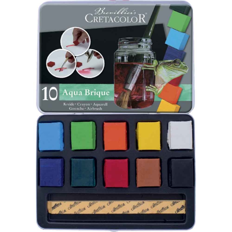 CRETACOLOR 10 AQUA BRIQUE WATERSOLUBLE BLOCK OF COLOURS