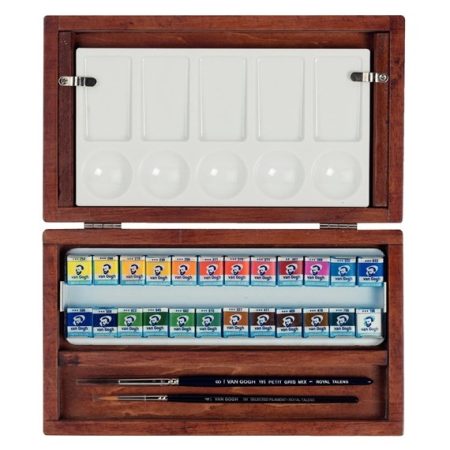 Van Gogh The National Gallery Water Colour Wooden Box Set with 24 Colours in Half Pans + 3 Accessories