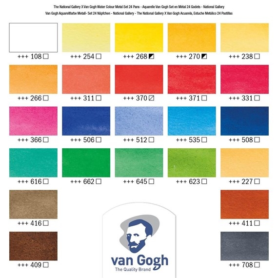 VAN GOGH THE NATIONAL GALLERY WATERCOLOUR METAL CASE SET 24 COLOURS HALF PANS VAN GOGH THE NATIONAL GALLERY WATERCOLOUR METAL CASE SET 24 COLOURS HALF PANS